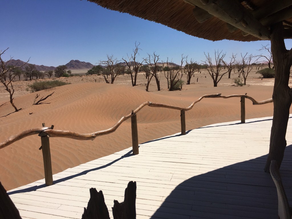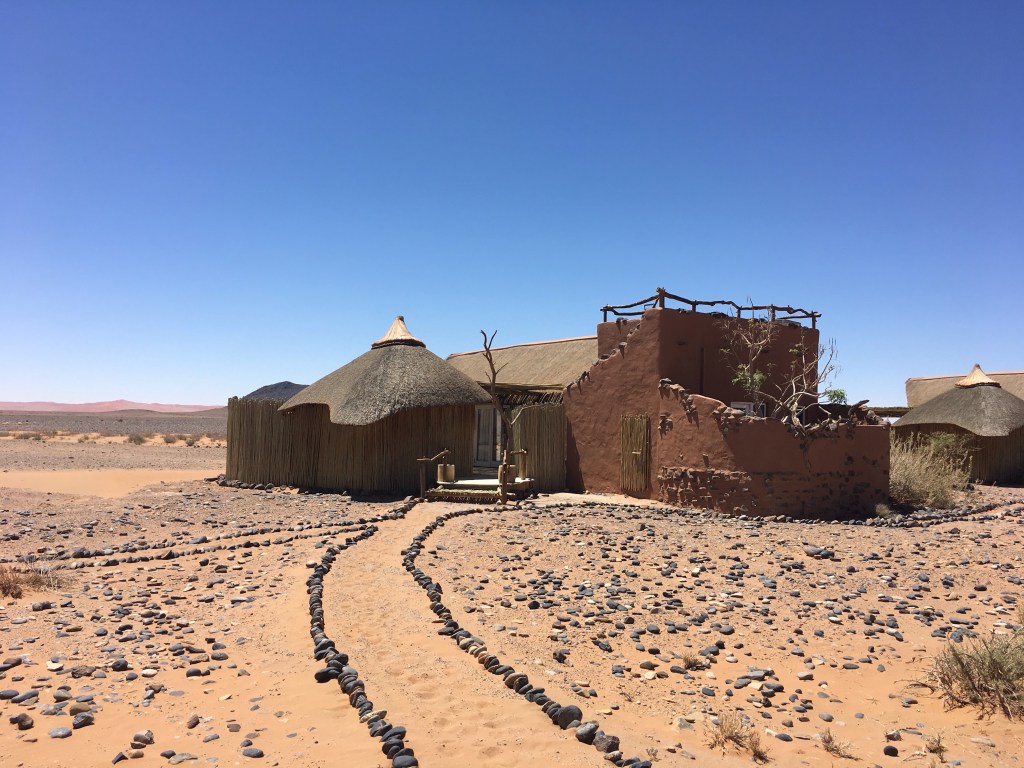 All the buildings, including the main lodge are well designed and just what you would expect to find in the African desert. We stopped into the main lodge for a late lunch, and watched the staff working away outside sweeping the blown red sand off the decks, and shaking it out of the loungers and pillows. This would be repeated at least twice daily during our stay. Seems like the wind picks up here every afternoon and whips the sand about…….gets into everything and hurts like a bitch if you catch a blast in the face.