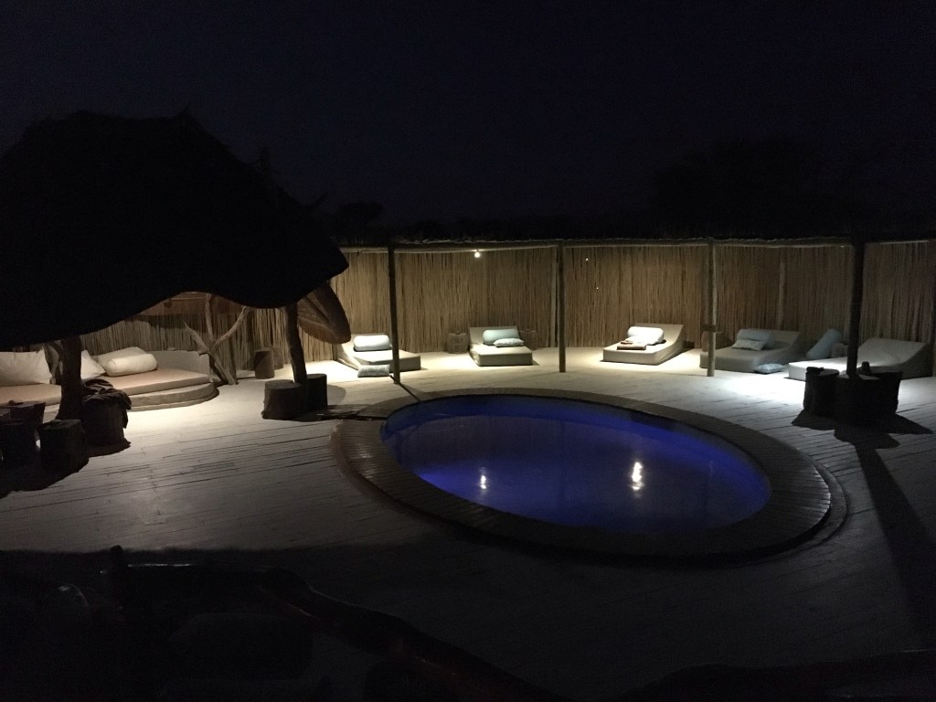 There are 9 individual suites at Little Kulala……..all pretty much identical, separate buildings with outside covered lounge area and cold plunge pools, spacious rooms/bathrooms, including outdoor showers. We were also taken up on the roof of our unit where there was a bed for sleeping out under the stars………just ask and it will be set up for you……..we decided maybe tomorrow…….or maybe not. We were in #6, the farthest unit from the main lodge, and quite a walk through burning hot sand…….40 degrees today………we tried out the plunge pool.