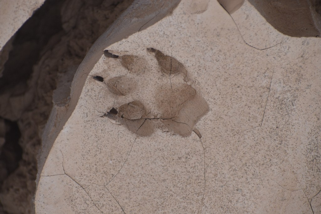Oasis in the desert……checked for predators before getting out of the truck. A beautiful but poisonous flower…….bush men would burn these in camp at night to keep predators away. Mud flats…….think this is a hyena track, but sure Steph will correct me if wrong.