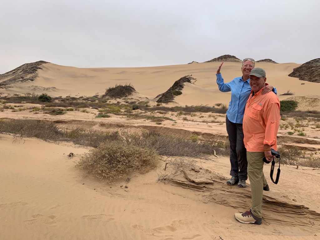 We enjoyed a great dinner last night with Chritiane, Rose, and Susan, before turning in to our room……..#4, for real this time. You are not allowed to walk anywhere in camp after dark without a guide escort. I guess he sacrifices himself to the lions while we run like hell? However, when we got to the room, we flicked up the bolt lock that goes into the floor, opened the door, and walked into the room. A gust of wind came up just at that moment, closing the door, and allowing the bolt lock to slide into place outside. Now I’ve been locked out of a few places in my time, but I can’t remember being locked in. Pissed ourselves laughing, realized we have no phone to the lodge, no way to contact them other than using the emergency air horn they supply you with, and rather than advertising our stupidity to the rest of the camp, we started looking for other options. #1 – boy scout move using a knife to jimmy the bolt lock out of the hole on the other side of the door……..failure. #2 – same deal as #1 but with a variety of other instruments……coat hangers, toe nail clippers, etc……..here try this!…….#3 – there has to be some way outta here?………the walls in the units are double sided canvas, and the windows are velcro’d in screen panels…….easy enough…….tore one open and fired Jutta out into the wild desert night……brilliant, we are saved, and can get out of our room tomorrow morning for the trip to the Skeleton Coast.