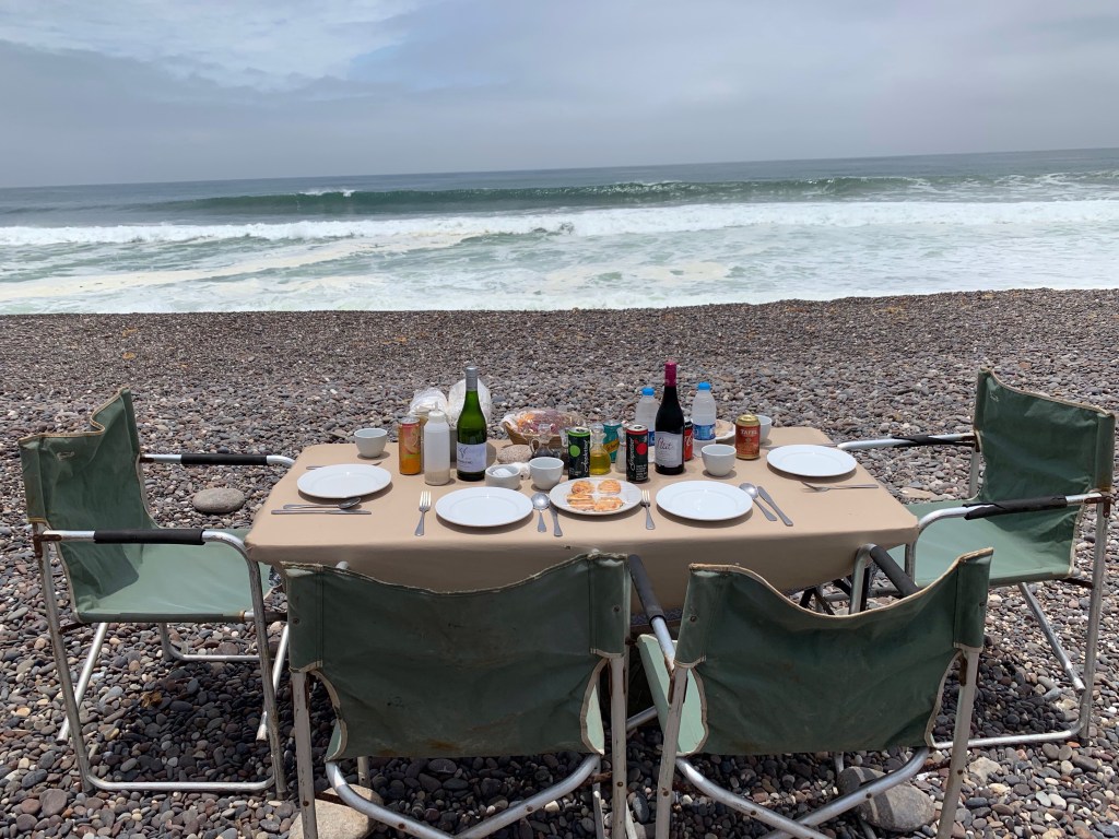 Rocky loaded us back in the truck and headed south down the shore………wasn’t long before a table and chairs appeared in the distance……..lunch. Superb spot with the waves crashing in close to us and another superb camp lunch. It was just a short trip to the airstrip and we were on our way back to camp…….short detour along the coast by request.