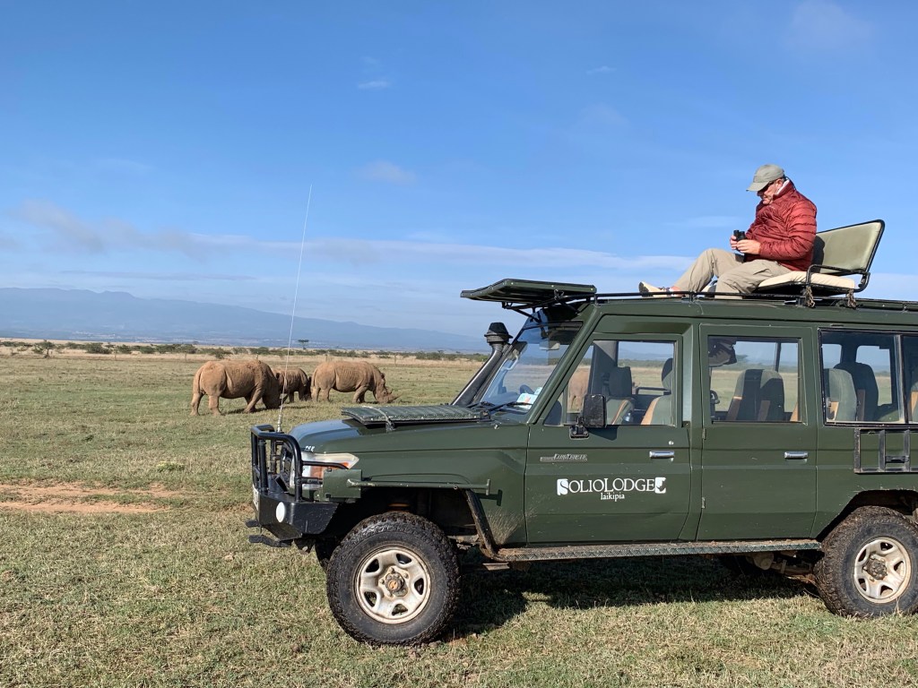 Jutta and I are overwhelmed by the lion sighting last night, but another day dawns, and we have time for a game drive before heading to the airstrip at 11:30……..just the two of us in the plane, so we can be a little late if something good happens. Amos is pumped and ready to go……..5:45am into the truck. We drive to a different part of the property we haven’t seen before…….a high grassy plain with incredible views………zebra, giraffe, thompson gazelles, more white rhino………no black.