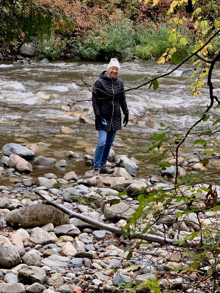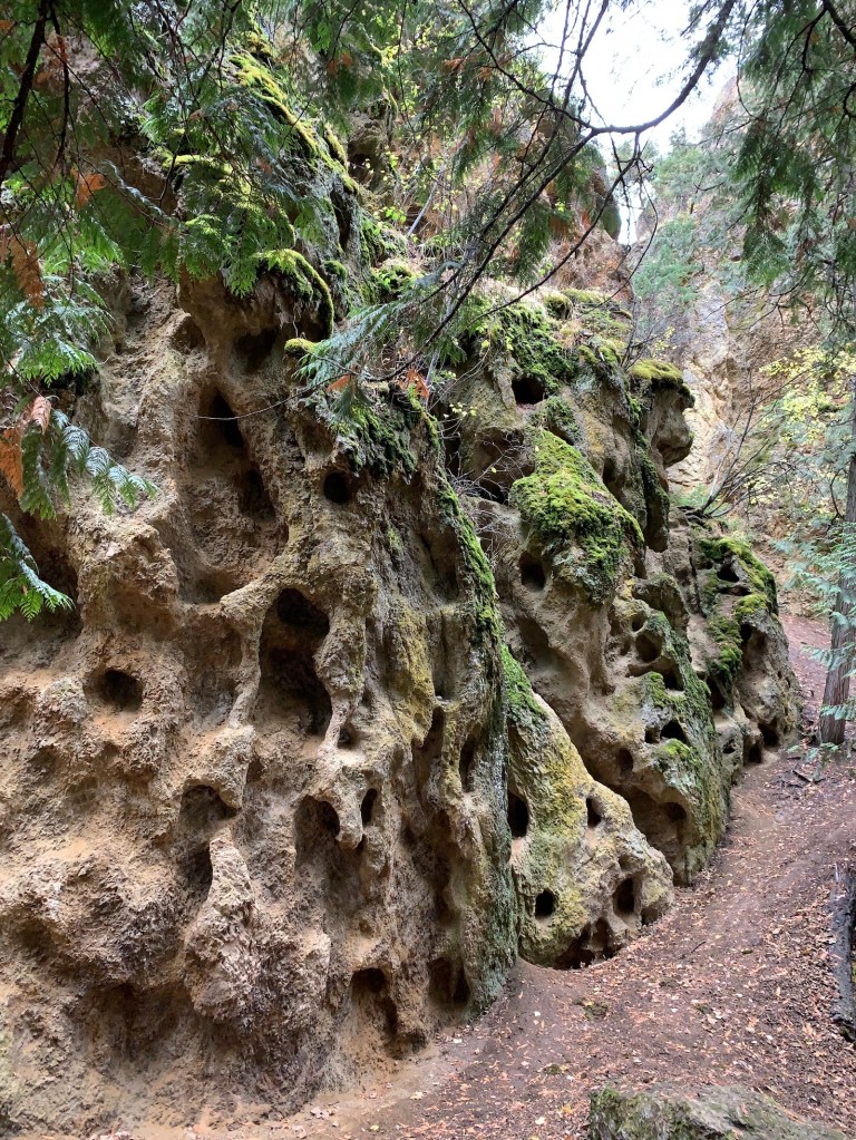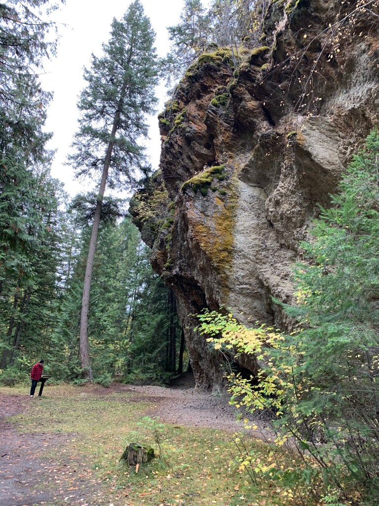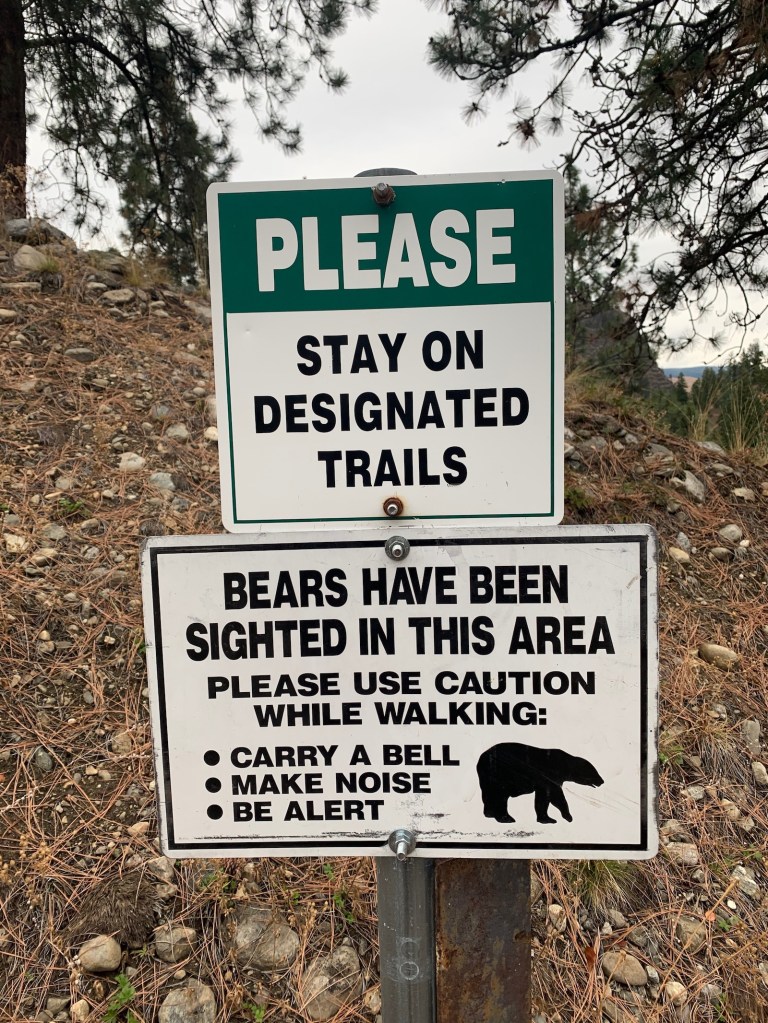 Somehow we managed to squeeze in time for a hike on the river trail just downhill from home…..really cool, and ended up at what they call the Stone Ovens……way too many pictures to follow……but we were also advised about bear sightings in the area……the local authorities warned of bear presence and said if hiking you should wear bells and carry pepper spray, and also, learn the difference between bear droppings when you see them on the trail…….black bear droppings would tend to be smaller and contain remnants of twigs and berries, while grizzly bear droppings would be much larger, contain small bells, and smell like pepper spray.
