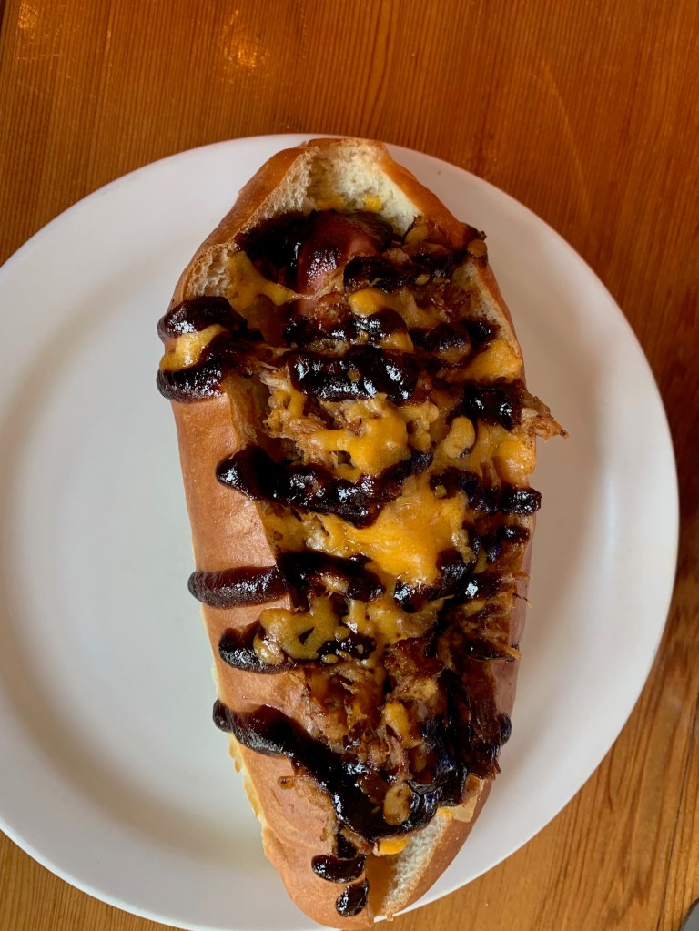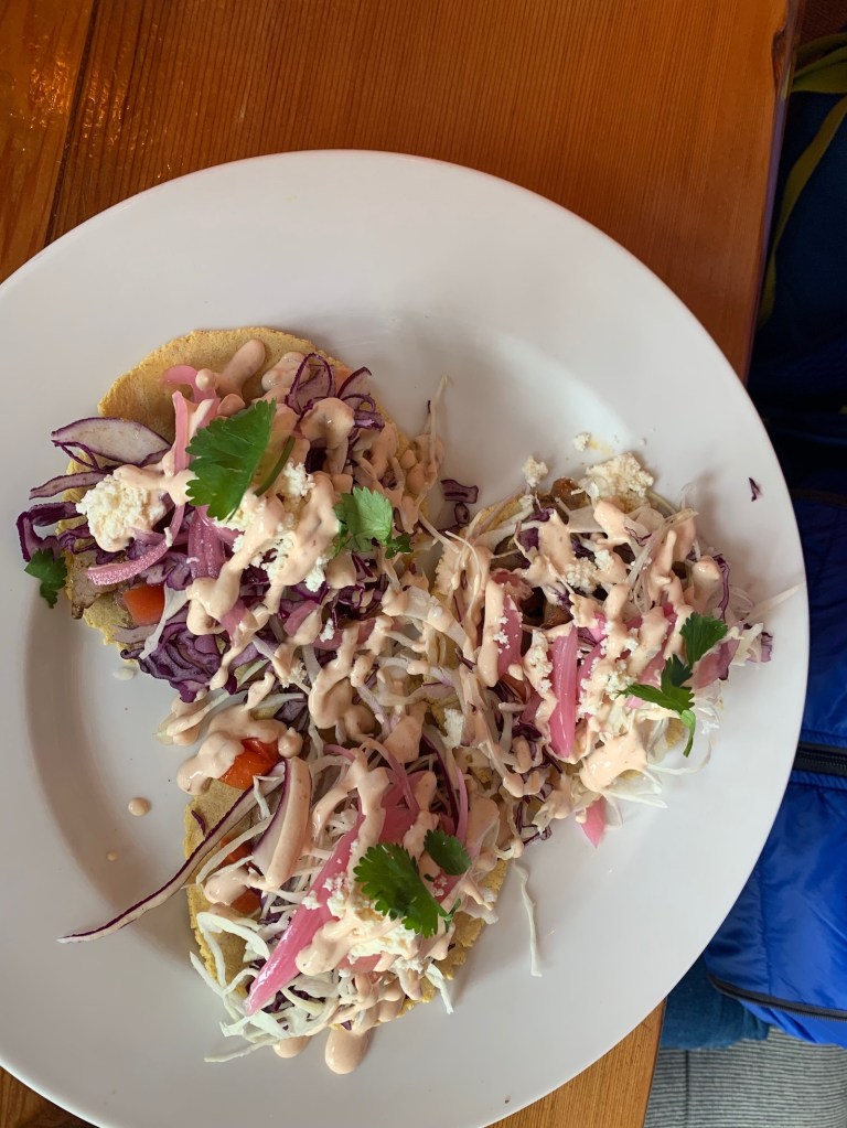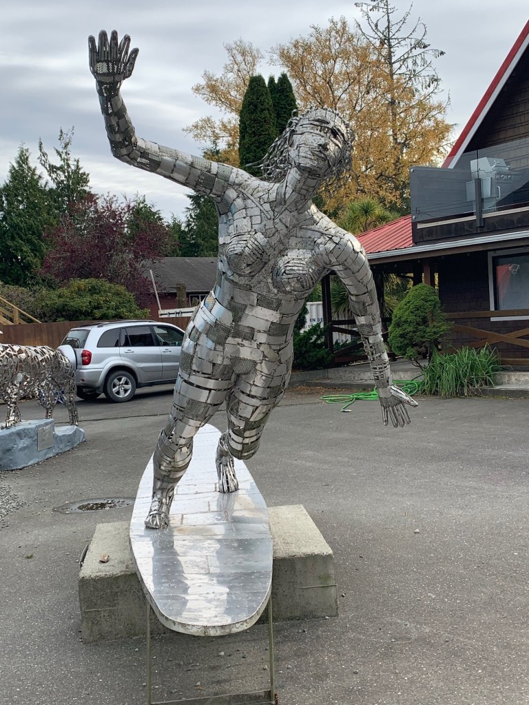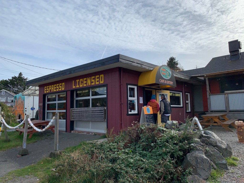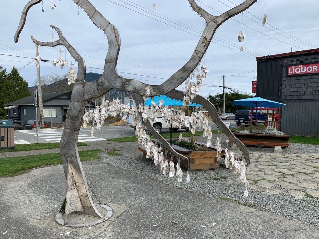 Gametime decision as we are leaving the parking lot…….back to Tofino for brunch or go south to Ucluelet………the game is on, and we turn right to Ucluelet. Ain’t never been there, they tell me it’s nice. What a great town. We didn’t see everything in the hour or so we were there, but saw enough to plan a full day this week for sure. Fantastic eats at Ukee Dogs Taqueria…….me, the Whole Hog Hot Dog (topped with pulled pork and carmelized onions)………Jutta the beef brisket tacos…….couple of local beers and we are livin’ large baby. There are many more restaurants to explore, and the Wild Pacific Trail runs along the shore down here.