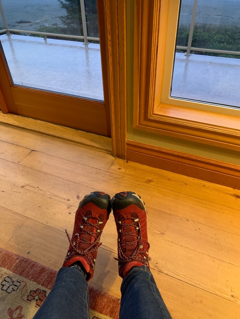 Jutta fires the clothes into the dryer, and we are off to find her some new hiking boots/shoes……..her latest pair of salomon’s are a couple of years old, soaked, leaking, a little torn, and for sure they have a lot of miles on them…….time for some new treads. She tried on quite a few……different brands, styles, but when the ruby slippers came out of the box, it was all over. Click those heels and see what happens!