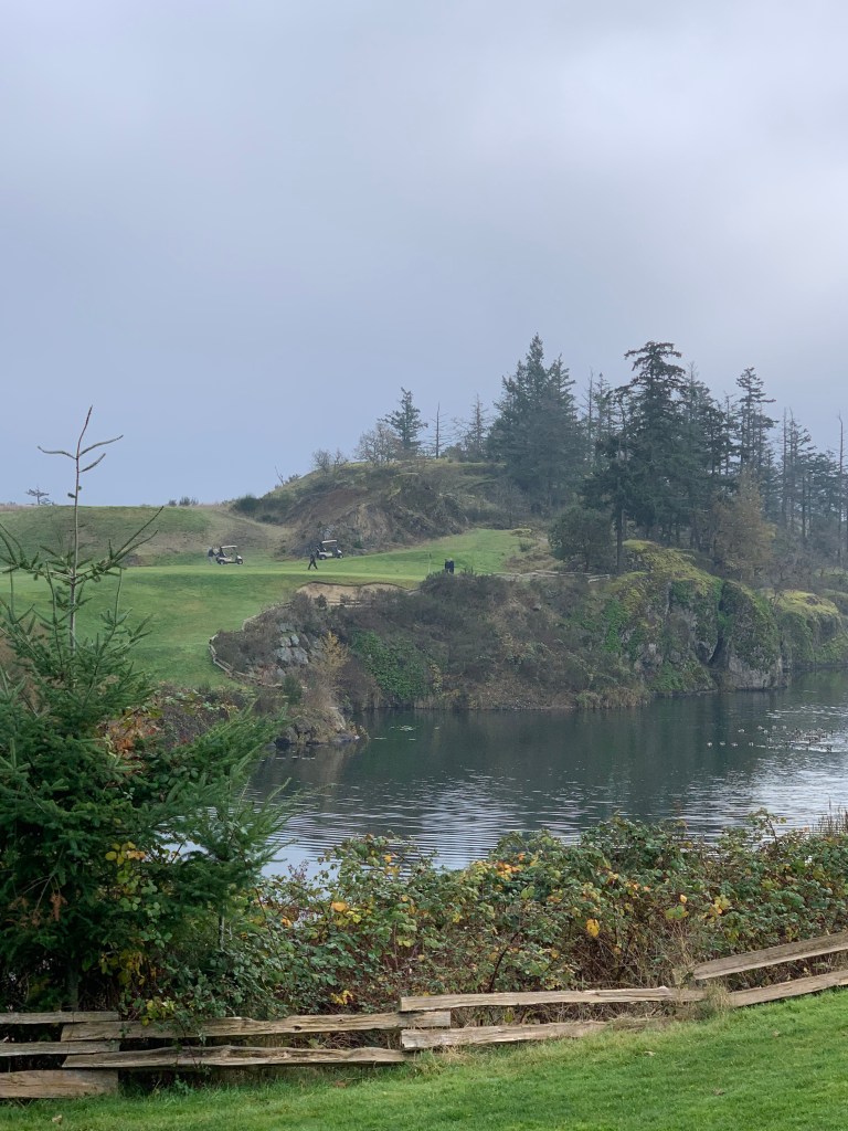 It is chilly today, but luckily no rain, so we head out to Highland Pacific Golf Course and get hooked up with our playing partners for the round…….initially we thought they were a couple, but turns out it is a man whose wife doesn’t play, but a single friend of her’s fills in for her, and plays with her husband all the time (plays golf with her husband). Really nice people who play here a lot, and we realize quickly having some local knowledge is a real bonus on this track. Initially just a two tiered driving range and practice facility, the owners decided to develop the surrounding lands they owned and create a course……….they built three holes, then expanded to nine, and eventually back in 2009, they opened up a full 18. It is tight, interesting, with huge elevation changes, and diabolical greens. We loved it, but scored like shit! Deer everywhere, and on certain holes there were large flocks of geese. While playing up a long par four towards the end of the property, we could see the next hole coming back the other way, and the fairway was covered with the critters. All of a sudden it was like a cannon went off……huge BOOM……we looked over and saw a cloud of smoke next to the approaching foursome’s carts, and the entire flock now taking to the air, heading for the pond below. It was an interesting demonstration of how to clear the golf course of geese. We figured the three geese remaining on the fairway were either deaf or just didn’t give a shit……”Seen this one before buddy”. I think they sell cherry bombs at the pro shop here.