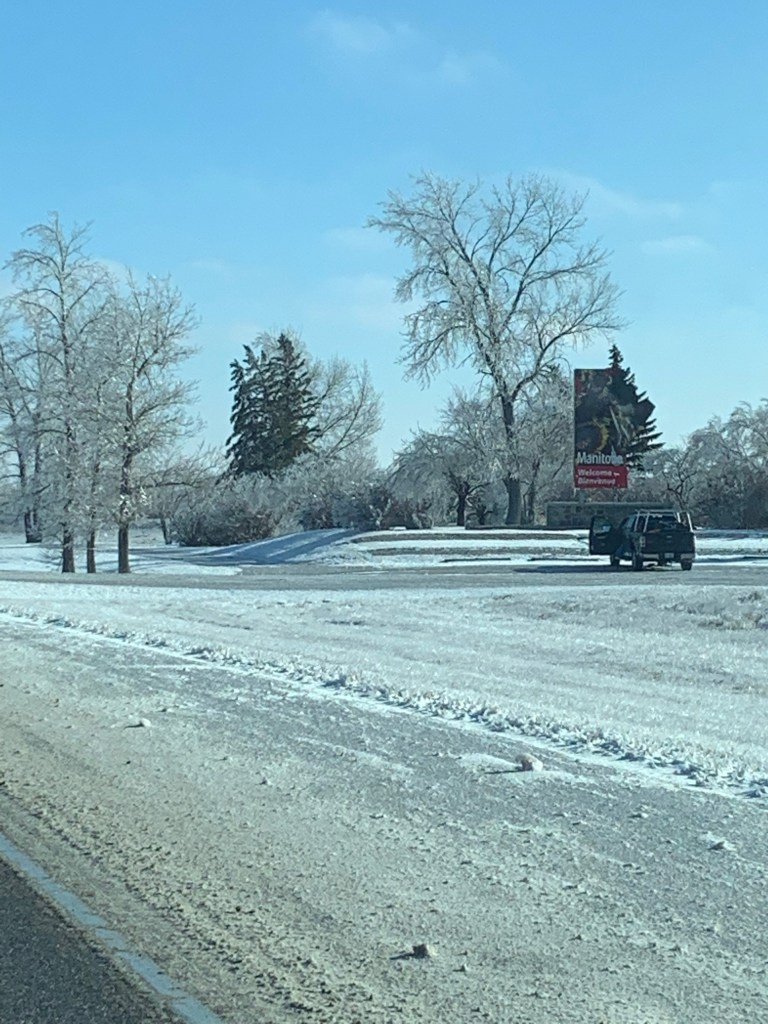Staying in the hotels has become essential, unless we want to join the truckers in rest stops and parking lots……..can’t find any campgrounds open, or with vacancies since Golden…….Plan B stays nice and warm, and would be very liveable with the furnace on, and all the plumbing works fine, even at -22….we still move the BC wine purchases back and forth from truck to trailer every morning and evening just in case. The Days Inn folks have been really nice, and they have plug in’s at the back of their hotel for us, so no need to run the batteries down. I think we will end up using hotels for the balance of the trip. We do miss our comfy beds in Plan B though.