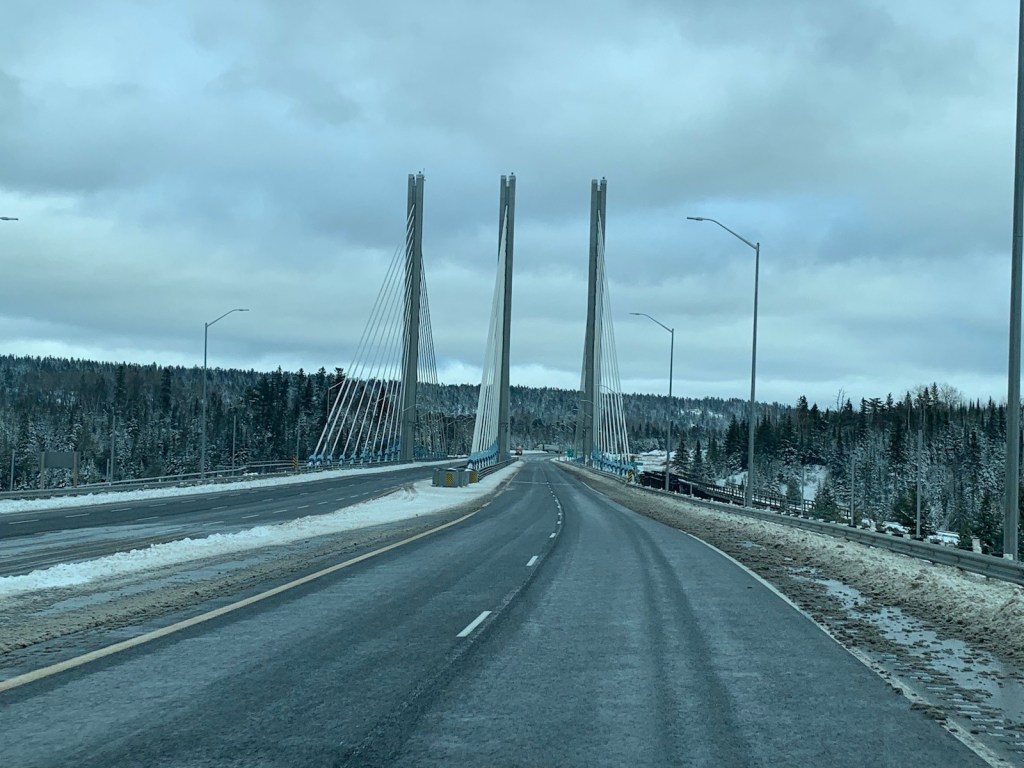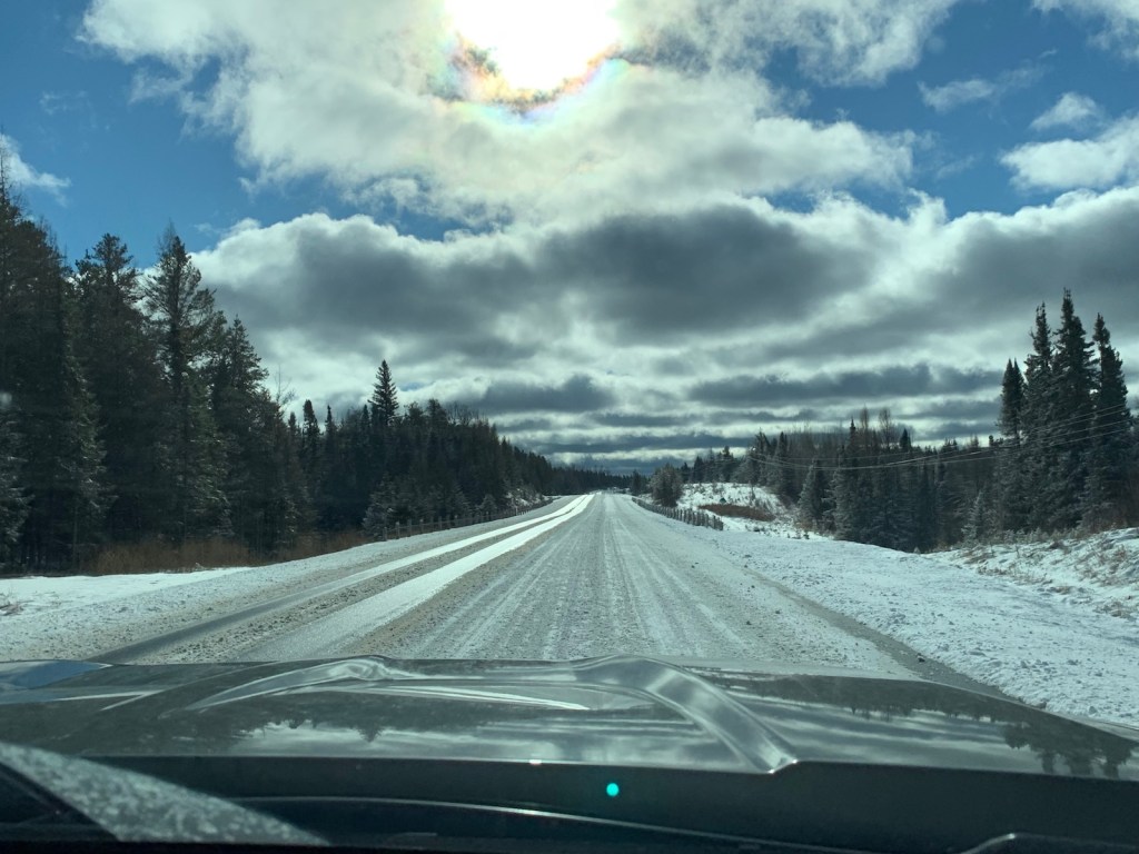 The push is on to make it to Sault St Marie, and I have to bypass a stop in Marathon to see my cousin Dave and his wife Margaret (next time you two)……..Clark Kent glasses on, we drive off into the night. We stop in White River to pay our respects to Winnie the Pooh, and with some mixed precipitation falling, discuss stopping in Wawa if it gets worse. The weather forecast for Wawa is not good……snow! I am pacing myself with a semi in front and we are making good time…….we drive on through and hope the weather doesn’t get worse…….good thing the roads are still in good shape for the most part. It is another 230km to The Soo which I figure will take the better part of 3 hours.