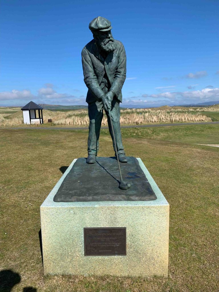 Just a slight glitch with the NAV system resulted in our first missed turn of the trip, but we caught it early……Sibylle’s iPhone got us back on track, and to the golf course on schedule. We really had no time to check anything out, or even drop our bags at the hotel, so just checked in at the pro shop and headed to the first tee. There are three courses here, and first up is Old Tom Morris, also know as The Old Links. For those who have never read anything about the early days of golf in Scotland, Old Tom Morris was a legend……..winner of the Open Championship in 1860 – 1861- 1864 – 1867…….credited with many innovations to do with golf course maintenance…….a renowned golf course designer……manufacturer of golf clubs…..and father of (you guessed it) Young Tom Morris, who is a story unto himself. Old Tom apparently visited this area in the early 1890’s and somehow was asked to design a course. The course has undergone some changes over the years, with major work being done by James Braid and Harry Vardon in 1906, and H.S. Colt in 1912, but many of the holes we will play today are just as they were when first designed by Old Tom, particularly on the back nine. This is a real treat.