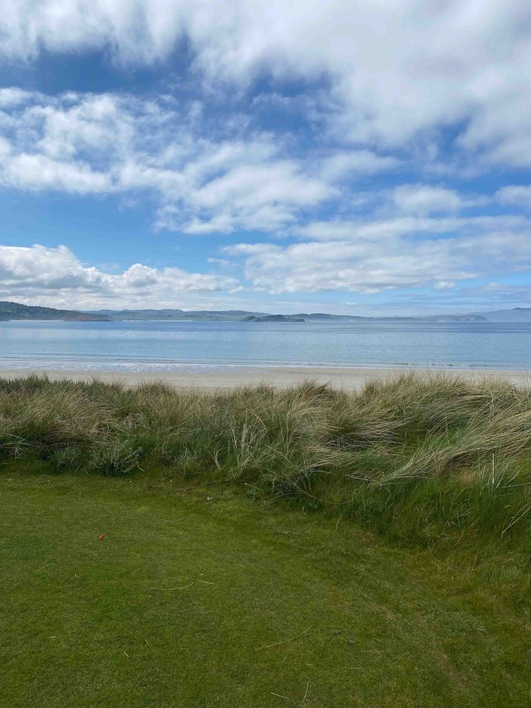 We have been able to chit chat with a number of people about this area, and our impression is that it is not unlike being Up North in Ontario. Many of the homes in town are vacation homes owned by people who may live 2-3 hours away (Belfast, Dublin, etc.) There is great golf at your back door, the ocean is right here for water sports and boating, good hiking, and absolutely stunning beaches……….I think Sheepshead Bay is a sand collector just like Georgian Bay………I’m not going in the water to check that out. They are a little bit short on restaurants in town, but other than that, this would be a great place to spend summer vacation, or to spend a few days, as we are, on your golf trip.