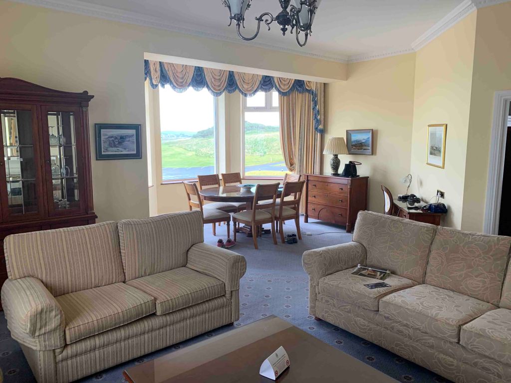 Following golf we make our way to the hotel which is just a couple of hundred yards down the road, and get checked in. We have an awesome suite with a separate bedroom, large living room, and a dining room (now blog central). Ok the furniture is a little frumpy, but great space and more than we would expect. Our booking agent Justin Farrell – Links of Ireland Golf & Travel is responsible for this and we thank him very much. If you need his contact info we can send it along. Justin put together our first itinerary three years ago and has stayed the course until it was safe to travel following the COVID restrictions. Our current itinerary he put together is a knockout.