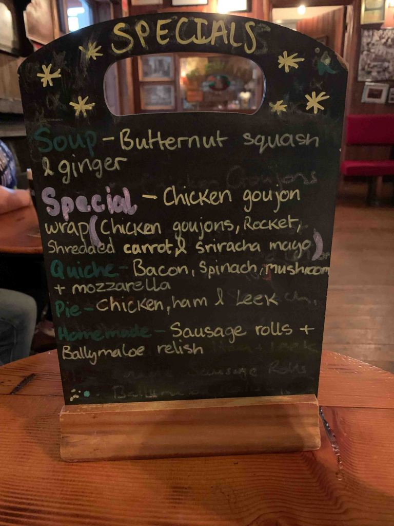 Being the foodies that we are, we heard about a place called the Olde Glen Bar via Justin who arranged our tour……..it had been written up by Michelin in their pub section and just gets rave reviews from everyone……..apparently booked up months in advance, we decided to go out there for a pint, and see if we could somehow wrangle a reservation for dinner this evening. There was some confusion getting their location plugged into the NAV as the had no address on the website……just Olde Glen Bar, Old Glen………plugged that in, crossed our fingers and off we went. The roads became narrower with every passing km, until it was really really tight………more than a few times on the trip after an oncoming car passed by, I heard either J or S exhale “Thaaaat waaaas close”. I have to admit I thought I might loose a side mirror somewhere. However, we arrived in one piece, and no scratches on the Jogger. Found the entry and ducked through the door (not Sibylle) and walked into a bedroom sized bar with stools and a couple of tables……..people were eating from what looked like takeout boxes at the tables, but we couldn’t make out the food. I stopped at the bar to order a few pints, and J&S went through to a dining room in the back. Jutta asked about food, and a chalkboard menu was dropped on the table…….the daily specials……and a paper menu with the rest of the offerings. We all looked at each other with jaws dropped, and fired up Google to see if Michelin had truly lost their minds………could this really the best pastrami sandwich in the world????? It turns out we were mistaken, and there was another room beyond ours which was a very cool looking 2 room restaurant…….this was the place. Menu looked fab, but unfortunately fully booked tonight, and won’t reopen after tonight until we are gone…..I went through and ended up talking to the chef and he said he would do what he could for tonight. Will have to wait for an email……..we’ll see. We have a couple of sausage rolls (the best in the World) and book it out of there.