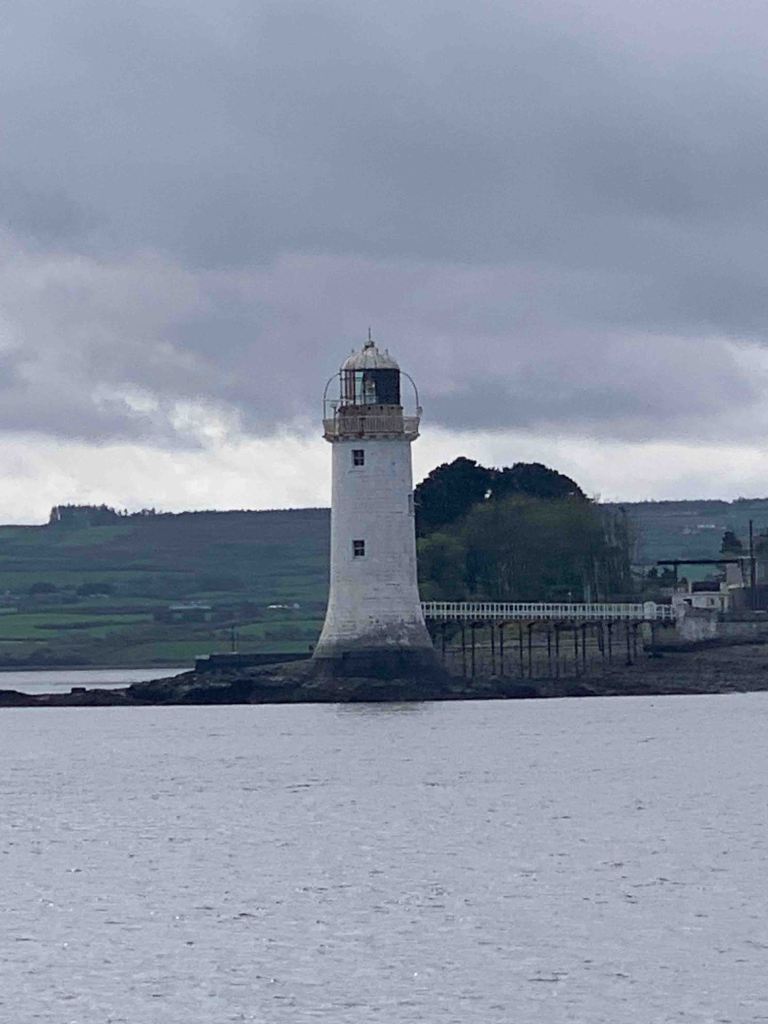 It’s a fairly quick ride down to the ferry landing and we have time for a machine made latte…….the barista is a gruff old gal who pushes that latte button with such skill it would make your head spin just watching…….she also runs cash for the sizeable gift store and snack rack……..with some time to spare I have a look around and come up with these beauties……..only in Ireland might you find these gems. My father once told me, explaining why Fallon did not appear on the Scottish Clan Map, that our ancestors were the O’Fallon’s from Ireland, but we were kicked out and sent to Scotland for being horse thieves and pig stealers. I drop them on the counter and say to Mrs. Gruff, “I’ll give you three guesses at what my last name is and the first two don’t count.” She said nothing, but I did get a smile. The ferry is approaching and we roll on with just a handful of other vehicles……..light load heading south, but we find on the other side it is lined up for 1/2km and they will be full on the return trip. Only 20 minutes for the crossing and we got a good look at the two power stations……..one on either side…….the old lighthouse, and long abandoned old ferry landing.