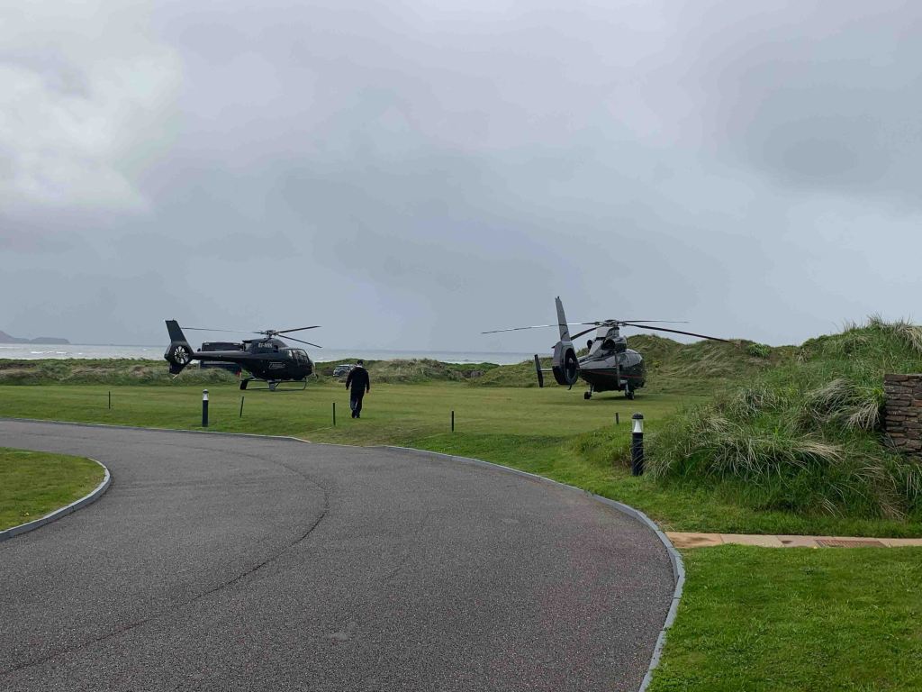 For almost the whole back nine we have been watching helicopters coming and going from the course……….turns out to be a group of about 20 or so Scandinavian guys who are on a chopper tour……..this is a thing!……..sometimes playing 36 a day at two different courses, but your ride is in the choppers. Nice way to travel.
