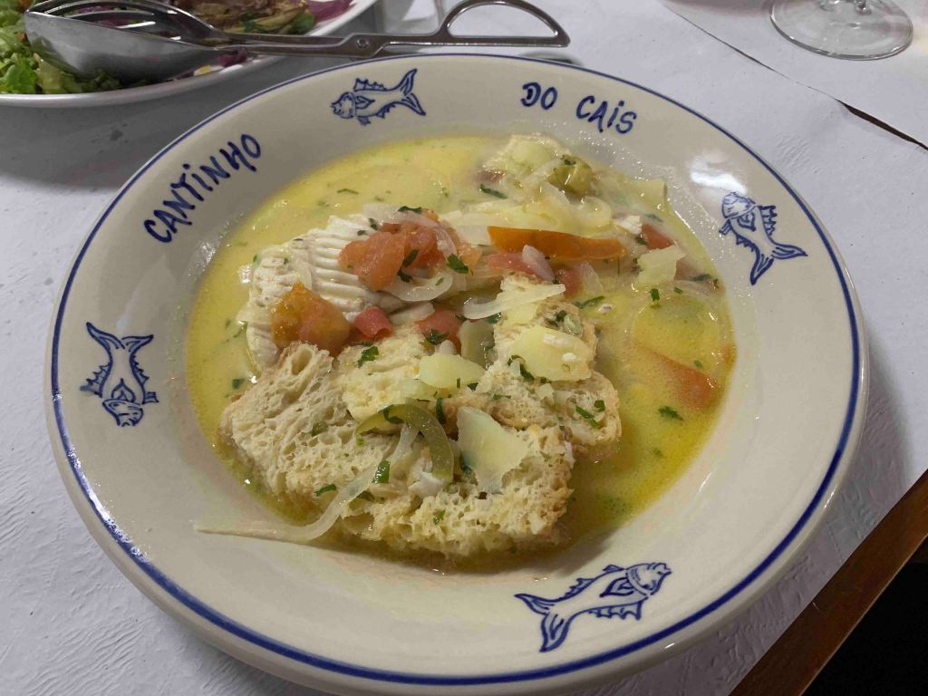 Jutta’s actual birthday dinner is scheduled tonight at a small family run restaurant called Cantinho do Cais in the equally small town of Sao Bras………it took us a while to find it the other day when we stopped in to make the reservation, so we hope we have better luck tonight…….in the dark! This one comes recommended by one of the hotel employees who slipped me the name on a note…….I guess they are only supposed to recommend the approved list that is on the hotel handout? He tells me it is great and very traditional Azores style cooking. Well darkness and all, I missed the damn road and ended up about 10km down the highway before finding a good exit to turn around at……..not chancing a U-turn on the highway in this blackness……….loaded up the phone map……..this car GPS sucks……..and in no time we are back on track and at the Cantinho minutes later. All the reviews on this place say you must have the fish soup and the fish stew, and if you want to try some grilled fish, you can be assured it is fresh that day……..I guess all the old fish goes in the soup and the stew! Our waitress was great, and pretty much ordered our meal for us, helped pick out a 5 euro chardonnay……then another……and we had a great meal. Topped it off with a couple of traditional muffin things (I have to get better with these names) served with pineapple slices so sweet to die for. I thought the stew plates were pretty fancy and would make a good souvenir, so asked if they were for sale……..Mama came out from the kitchen and gave one to Jutta, so you just might see it in use sometime back at Oslerview.
