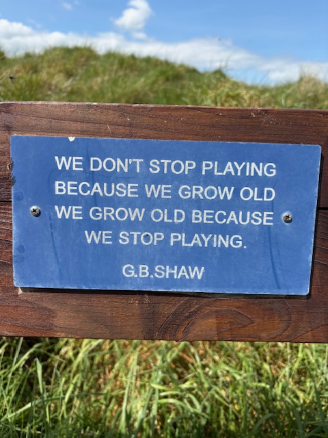 Enniscrone is just twenty minutes up the road, and we arrive in plenty of time to hit some balls at the range and do the prelim shopping in the pro shop. We have booked a forecaddie today after going without the last couple of rounds……..everyone feels it is well worth the extra $ to have some local knowledge and a trained pair of eyes onside. Dave is our man today…….an older member of the club who lives just down the road and caddies a few times a week in between playing himself. He will be taking his own cart, telling us that if we want him to run around and find four balls per hole, there is no way he can do it on foot……..his buggy is completely closed in with plexiglass panels and sliding doors to get in and out…….now known as the Popemobile. The course dives immediately into the dunes with beautiful, challenging holes, and we are glad to have Dave along to provide directional guidance. Dave’s best line when asked if we would find a wayward tee shot was “I couldn’t find that if it was a beachball.”……..funny guy.