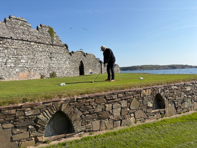 Dinner was great……sleeping in that bed, not so much…….home cooked breakfast in the morning was perfect, and we are off to the course. Ardglass is everything we remembered, and is in very good shape for so early in the season. This is a real gem and shouldn’t be missed if you are in Ireland. Our caddie on the first trip here told us that the club was concerned they were not getting a lot of international play like some of the other clubs……..a consultant was hired, and among other recommendations, told them they needed to raise their price……..if you charge 85 pounds for a round everyone thinks you are shit…….if you charge 185, you will attract a lot more play, and that is what has happened, and it is worth every penny. There are a few changes to the course since we last played it, most noticeably the 16th which is now a stunning par 5 with stone wall features that need to be avoided, and the halfway house is now completed and fully functional. Just a fantastic round of golf.