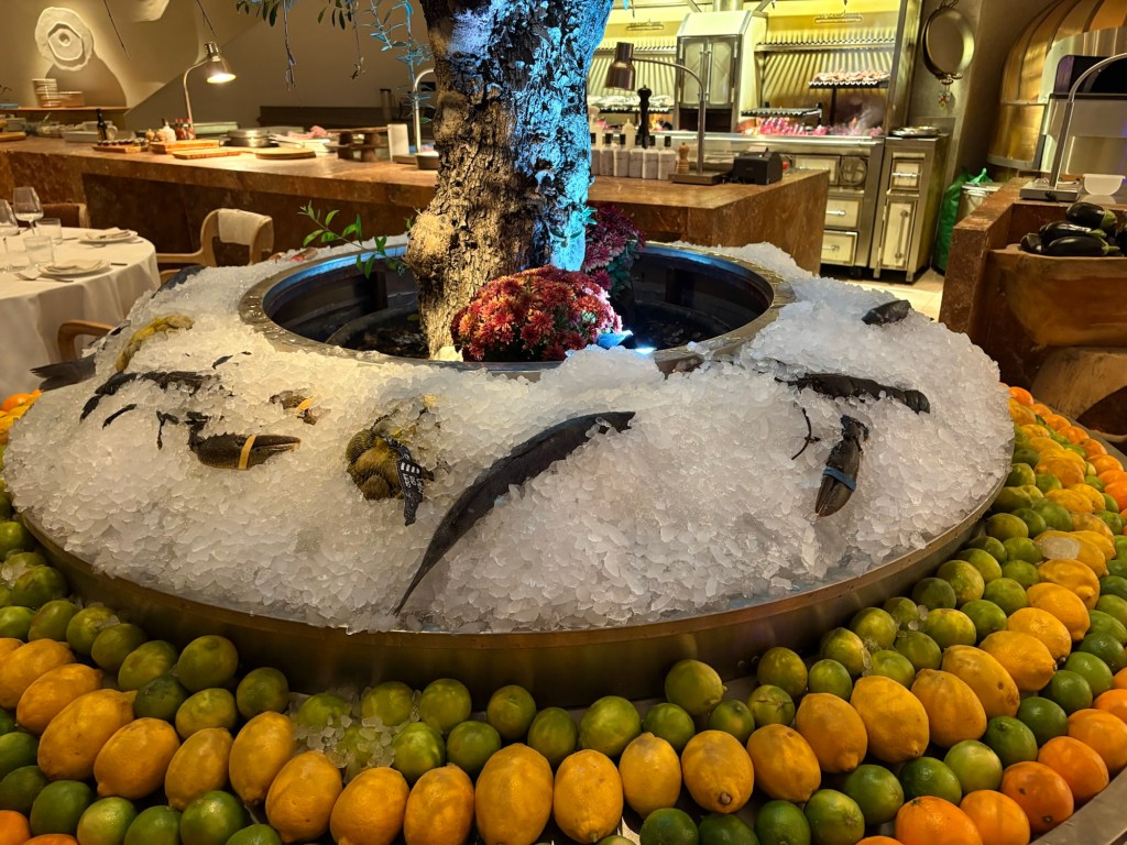 The goats investigated a property just down the beach from us on the way into town…….”EVA”……..we thought at first it was a hotel, but we come to find out it is a beach club, with a few floors of condos on top. Interesting concept……..large restaurant bar with seating inside or out…….elaborate furnishings and decor……huge open main kitchen……..big pool…….access to the beach……….the dinner bell is ringing.
