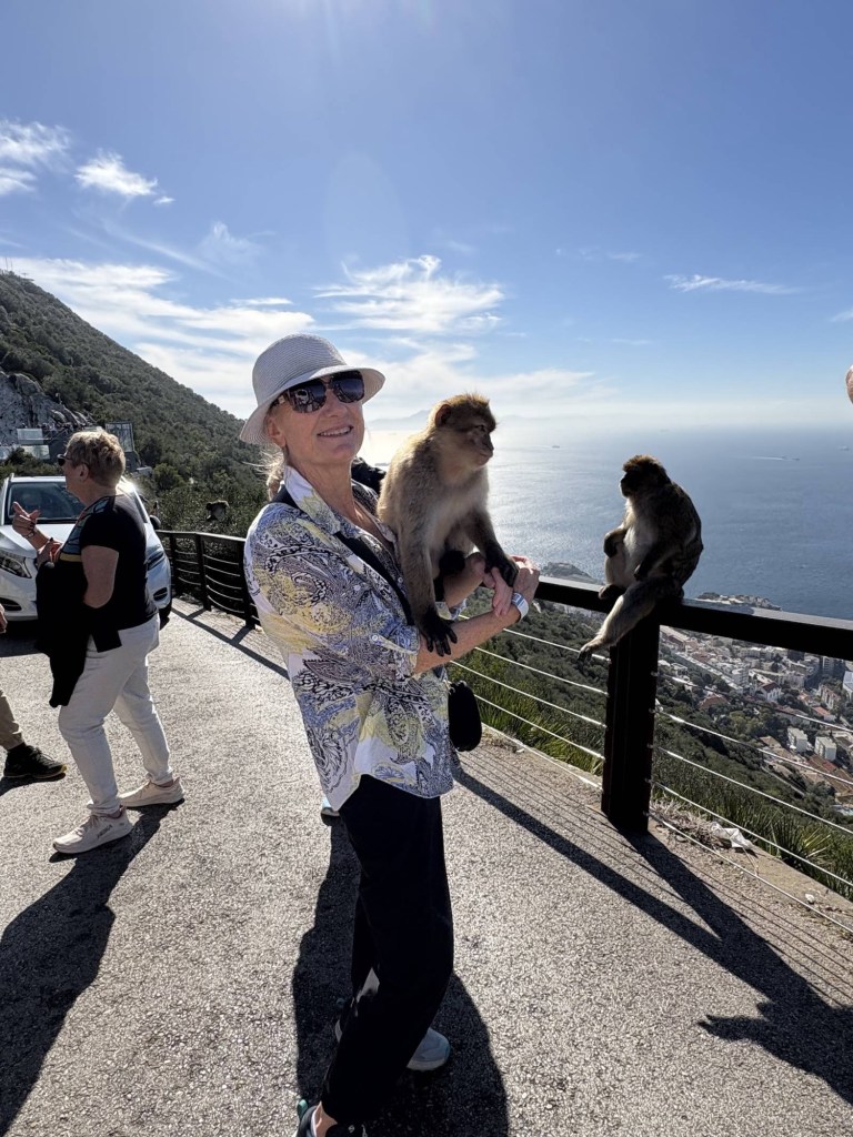 The tour goes well…….pictures will tell the story, but it was very interesting and we are so glad it is not high season…….thousands of people a day take these tours, and today it feels like just hundreds. Highlights for us were…….just being there on top of The Rock……..views incredible……Africa seems so close……..the monkeys…….the population is monitored……all are chipped, vaccinated, and well fed……Jutta and Sibylle both took turns holding the little fellas, and couldn’t wait to wash their hands afterwards………the tunnels are amazing……..early excavations done by hand……”The Siege Tunnels” for storage and defensive purposes during the various attempts to defeat whoever was in possession at the time…….these were hugely expanded upon by the British during WWII…….eventually 34 miles worth of tunnels, capable of housing 16,000 men with stores to last as long as 16 months without re-supply.