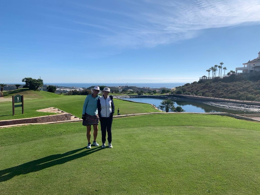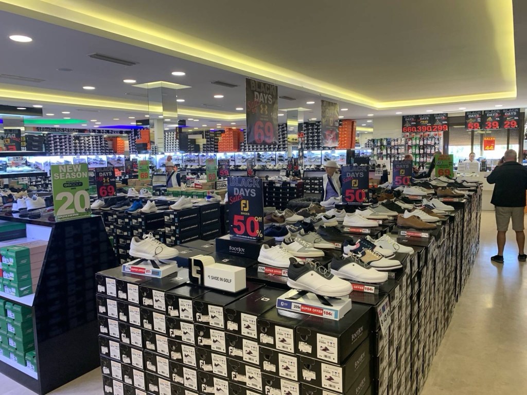 Fully caffeinated after a stop at Las Ninas, we get ready to head out for today’s round at Cala Nova. This course is in the same pocket as others we have played just north of Marbella, but when approaching the GC we are climbing pretty high up the coastal mountains. This club is seriously up there, and just getting out of the car the views are fabulous. I am sure when we walked into the clubhouse to check in our mouths gaped open in unison………..a huge room filled with golf shoes for sale……..every square inch of floor space was golf gear………bags, gloves, you name it, but mostly shoes. Funnily enough though, there were no clothes, so I asked……..”Clothes are downstairs senor”. So after checking in I went down for a look…….holy crap…….wall to wall clothes. This appears to be the place to buy everything golf related in Costa Del Sol……..why would you go anywhere else?