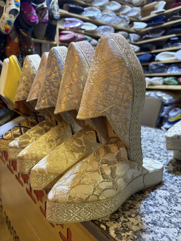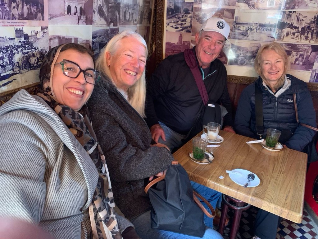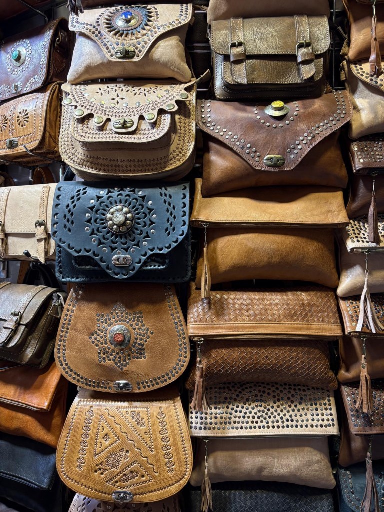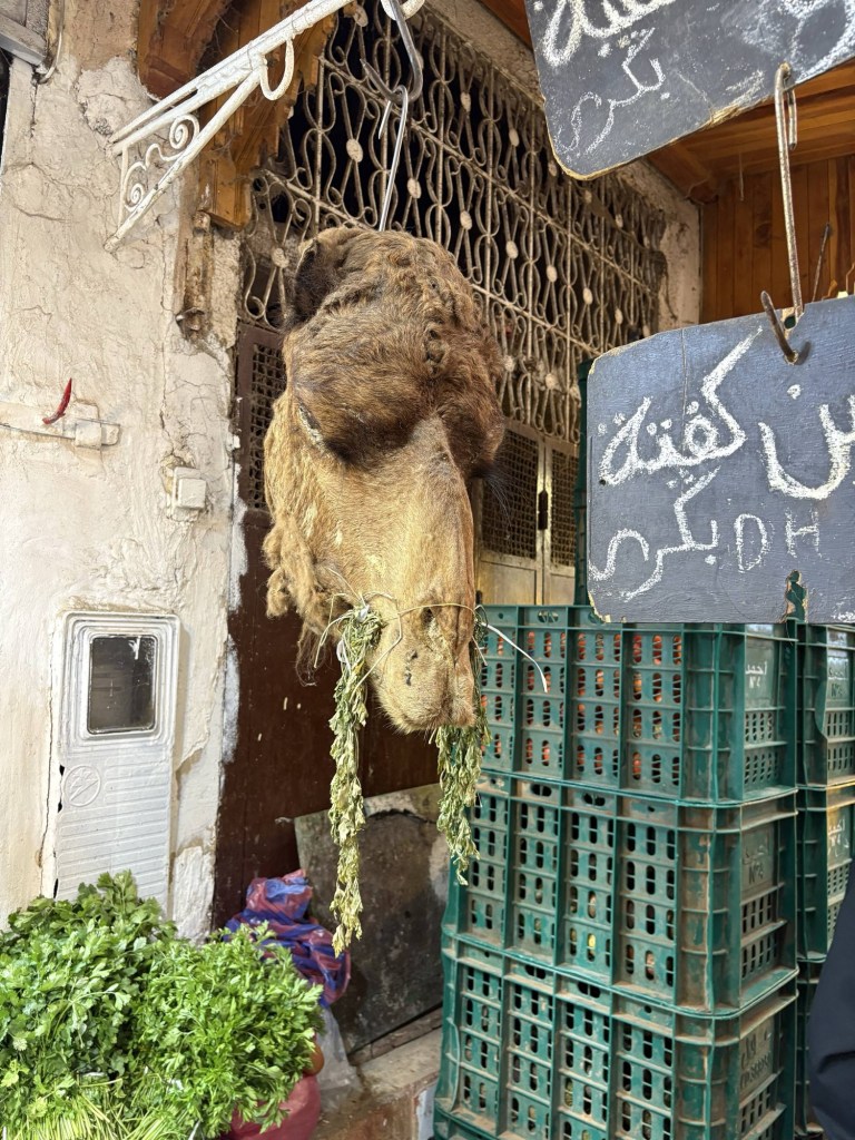 Our guide Farina was born, and grew up in the medina, a few minutes walk away from our hotel, so she is a wealth of knowledge about everything, and knows her way around the 7,000 streets in the old city like the back of her hand. She explains much about the customs, culture, and history of life in the medina and draws our attention to places and things of interest as we walk through the narrow streets and alleys. The goats just can’t help themselves walking amongst so many shops offering such a variety of goods. Even I got caught up in it looking at a new leather shoulder bag, but it wasn’t right and it only took one word from Farina and the vendor stopped following me down the street trying to make the sale. She is really well known in the hood. This was such an interesting tour, and I don’t believe we stopped at one palace, or museum, or monument of any kind, but we have a new appreciation for day to day family life here in the medina and in Morocco in general.