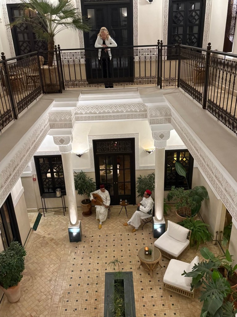 Jutta has a treat in store for us tonight……..recommendation from Norma will have us dining at Comptoir Darna, a very popular tourista spot, probably due to the fact they have a belly dancer show. I am IN. It is a most interesting spot…….couple of beefy bouncers at the door, low lighting, and a wine/spirits list that includes full bottle service across the board (Johnnie Black 2,000mad – 200 euro), and hooka service to your table. We have to keep Monica awake as the show doesn’t start until 9:30…….way past her bedtime.